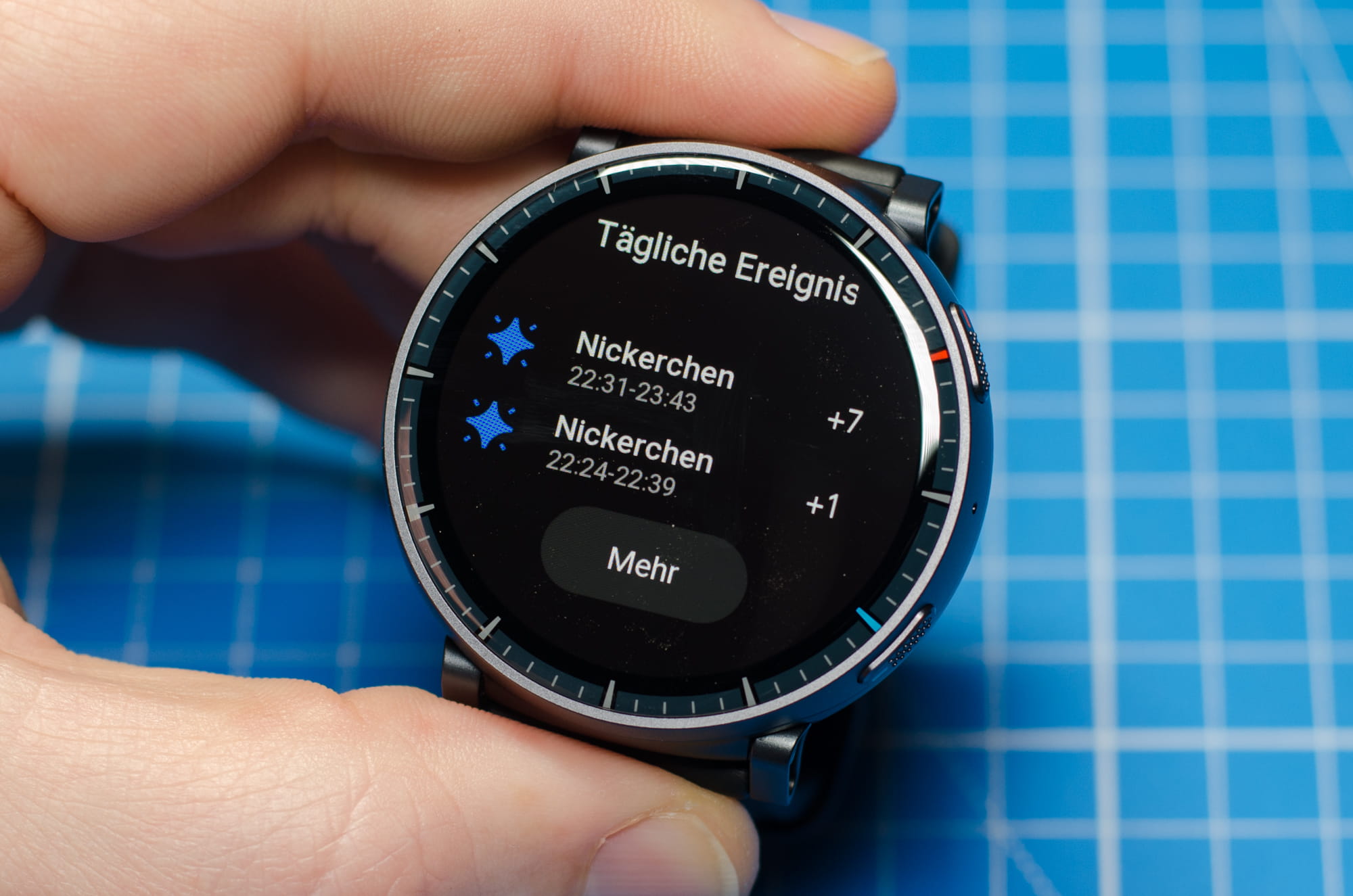 Der Verlauf der letzten Tage und die Abnahme während des Tages kann noch nicht am Handgelenk gesichtet werden. Ich denke, dass wird Amazfit ähnlich wie bei der Balance 2 und T-Rex 3 Pro nachreichen.