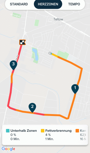 Der Streckenverlauf sieht in der App dennoch vollständig aus. Wobei sich schlecht sagen lässt, ob ein paar Messpunkte nachträglich reingerechnet wurden.