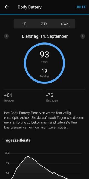 Die Daten sind nicht ganz so umfangreich, wie bei Garmins Sportuhren bzw. in der App. Einen recht guten Überbliock gewinnt man dennoch.