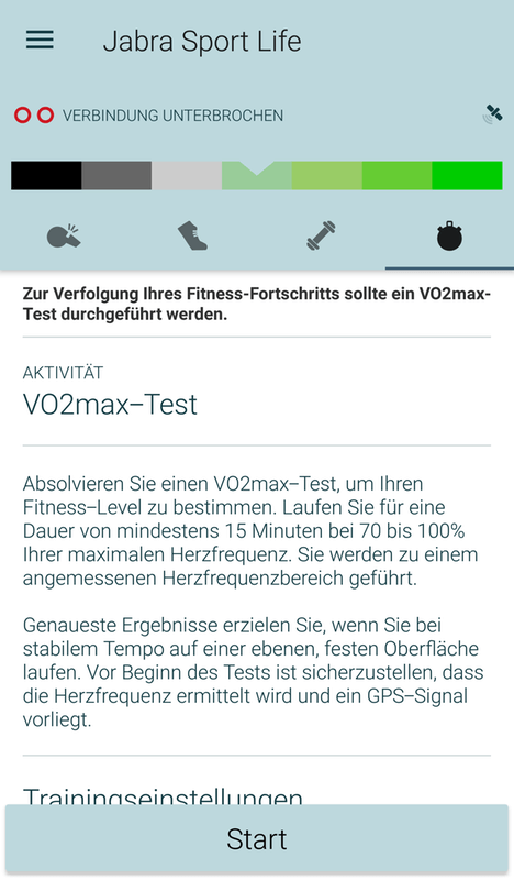 Am ehesten wird man sich wohl im Bereich „Training“, „Mein Körper“ und „Verlauf“ aufhalten. Das gilt jedenfalls für mich. Vorher sollten wir jedoch einen Blick auf den VO2max-Test werfen.