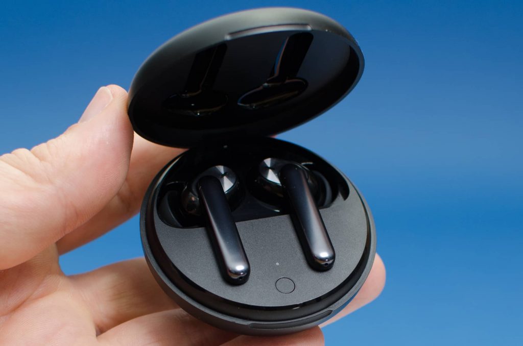 In der Aufbewahrungsschale liegen die beiden In-Ear-Kopfhörer in Vertiefungen in denen sie magnetisch sicher gehalten werden. Selbst beim Umdrehen der Aufbewahrungsschale fallen die Kopfhörer nicht heraus. Dennoch können Sie leicht herausgenommen werden. Das Öffnen der Aufbewahrungsschale mit nur einer Hand wird manchmal zur Herausforderung.