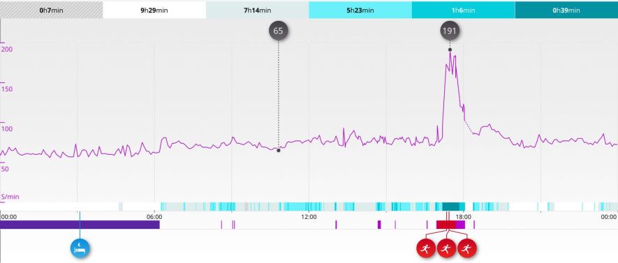Der Verlauf der Herzfrequenz kann natürlich auch über die App und die Web-Plattform eingesehen werden.