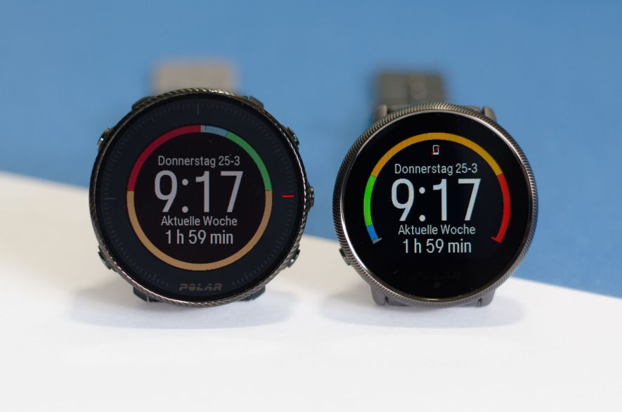 Die Ignite 2 bietet wie ihr Vorgänger einen Touchscreen und kann daher auf einen Großteil der Knöpfe verzichten, die Vantage M2 und V2 besitzen. Das hat Vor- und Nachteile, denn mit feuchten Fingern reagieren Touchscreen weniger präzise. Dafür ist die Bedienung meist intuitiver.
